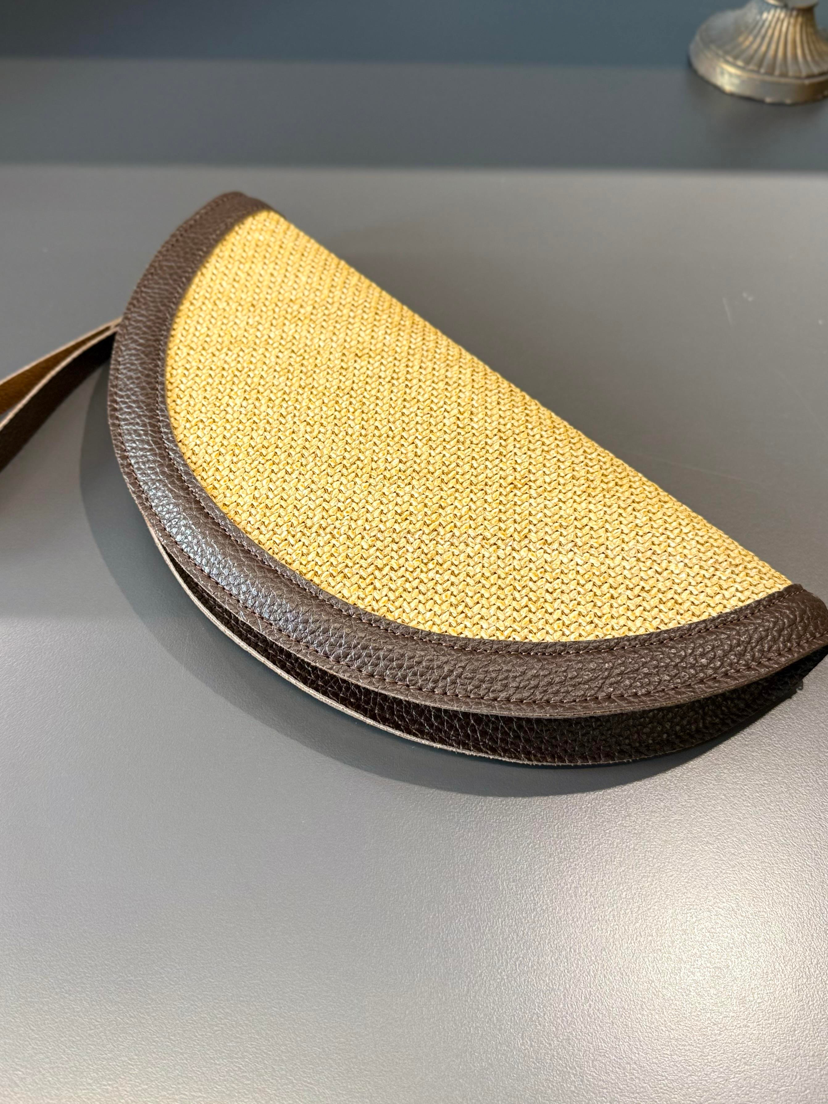 Acı Kahve Hasır Yarım Ay Clutch Çanta