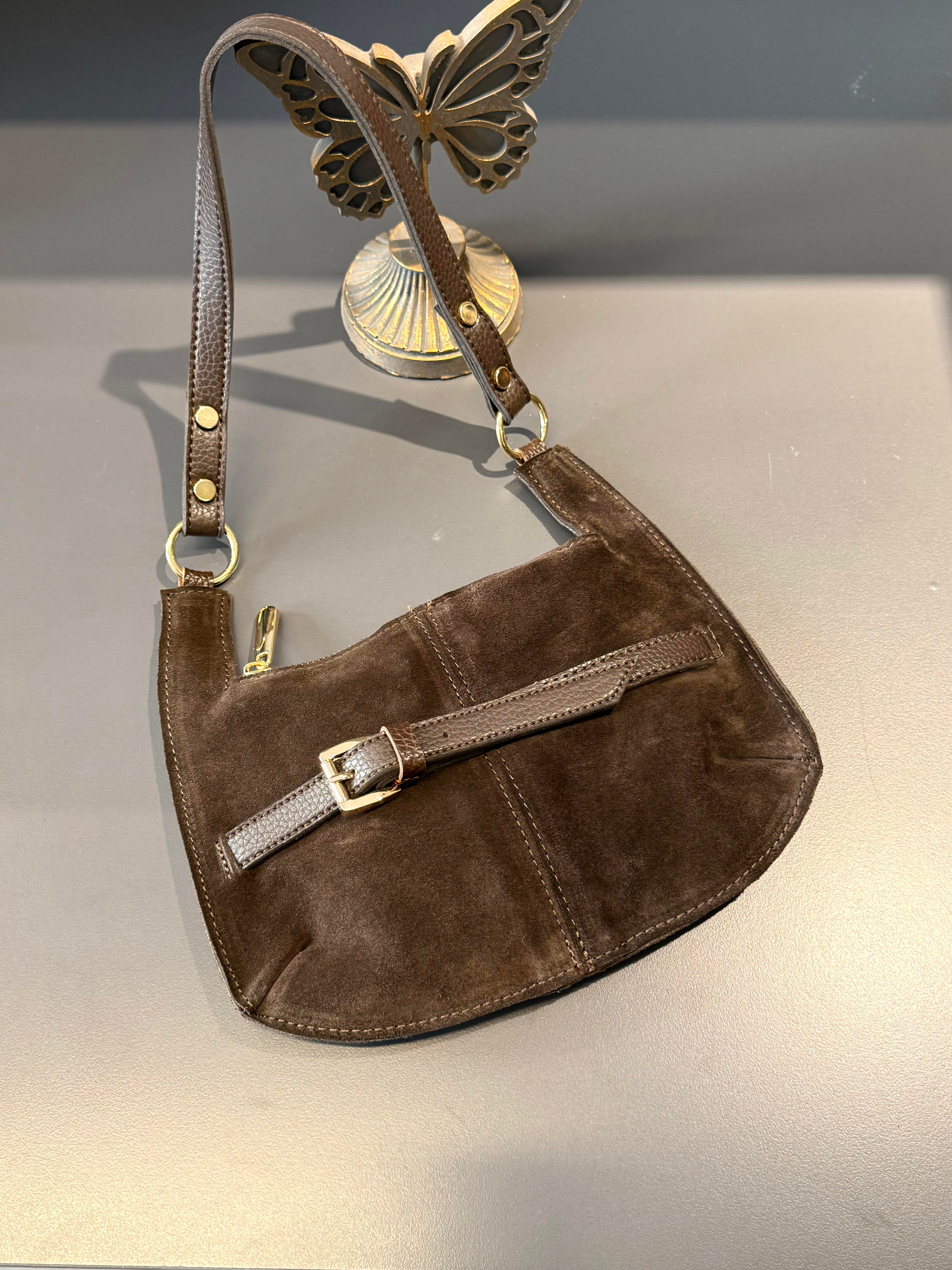 Acı Kahve Kemer Detaylı Süet Baget Çanta