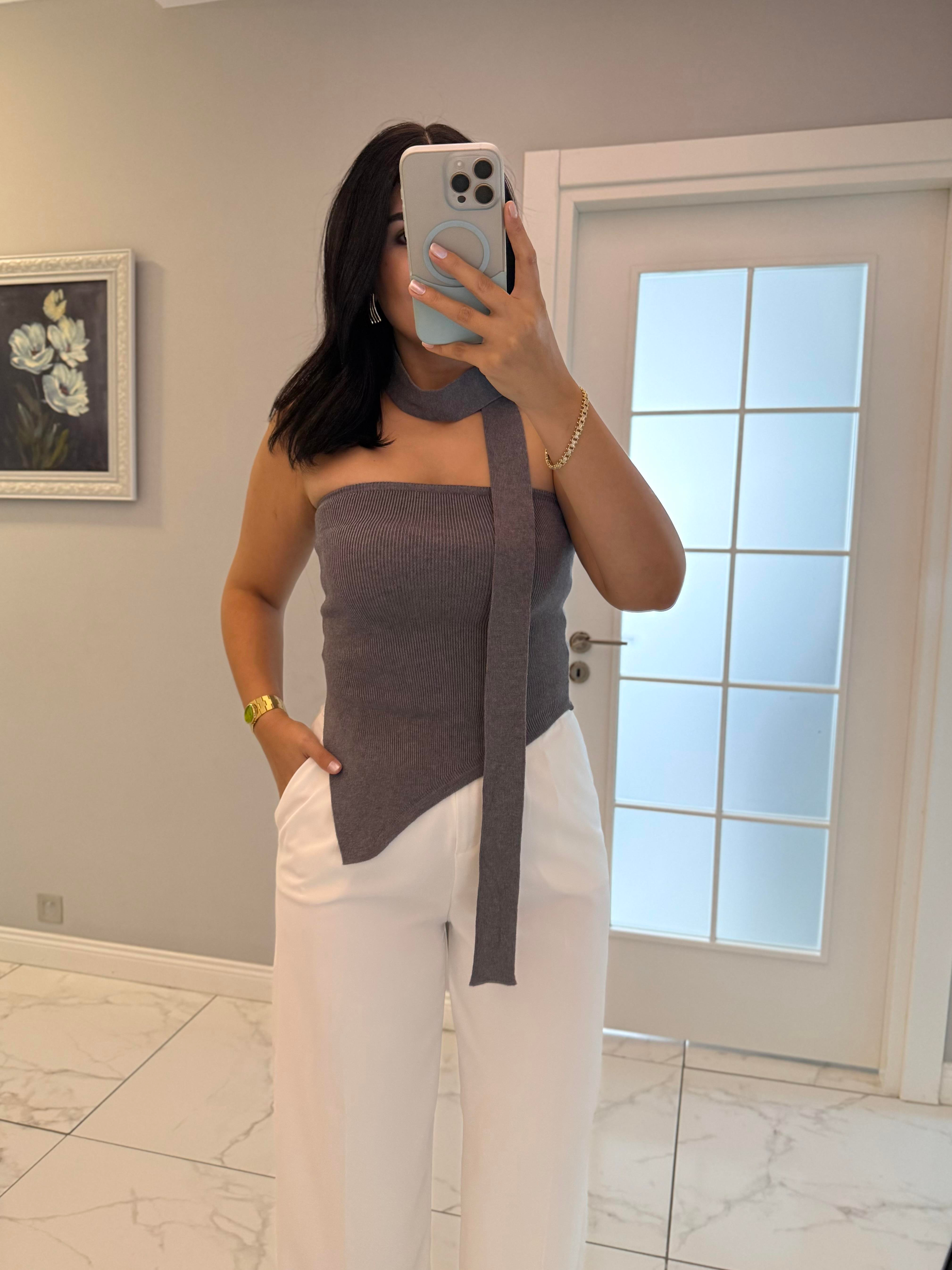 Antrasit Verev Kesim Triko Bluz