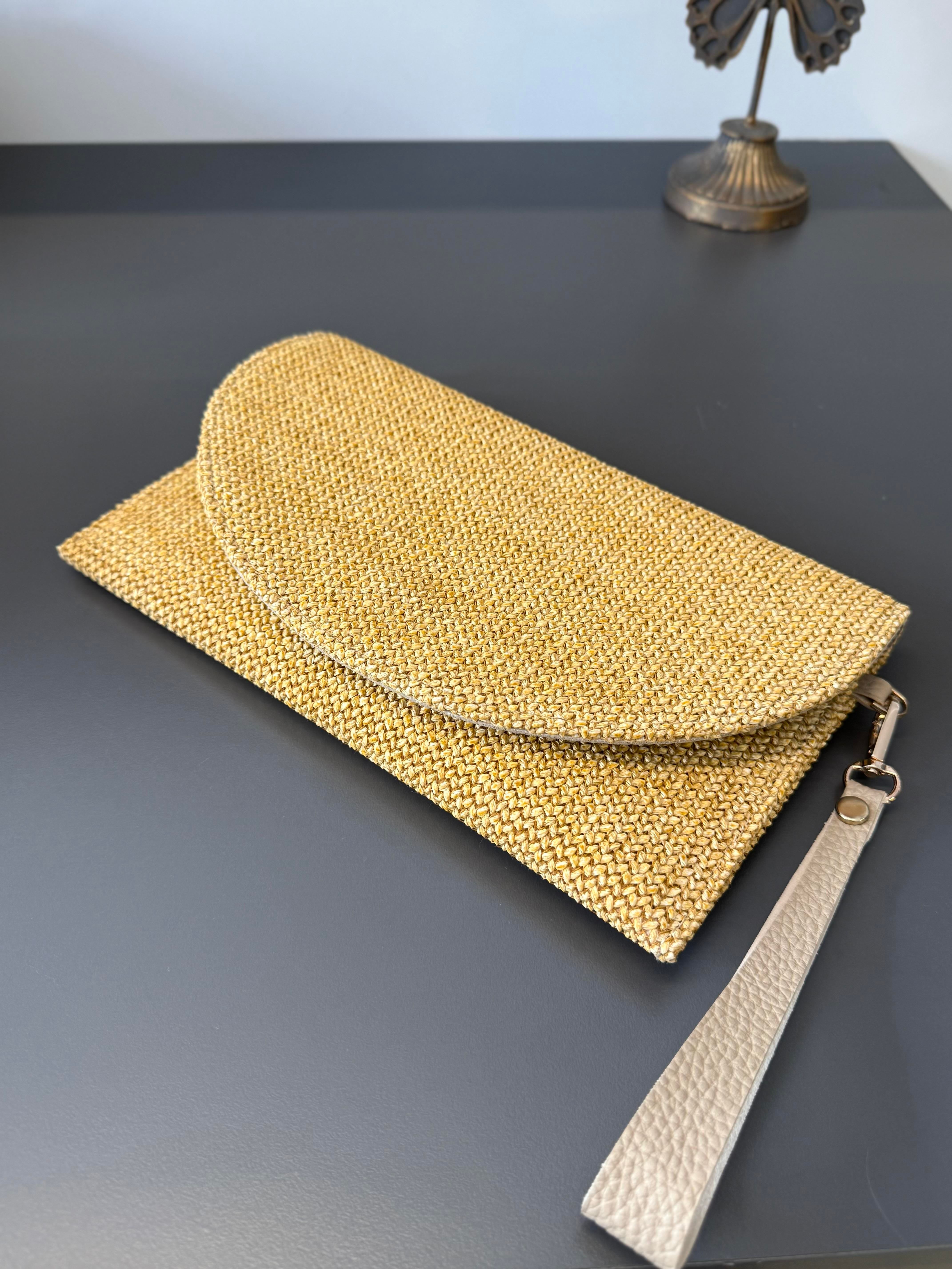 Bej Hasır Kapaklı Çanta