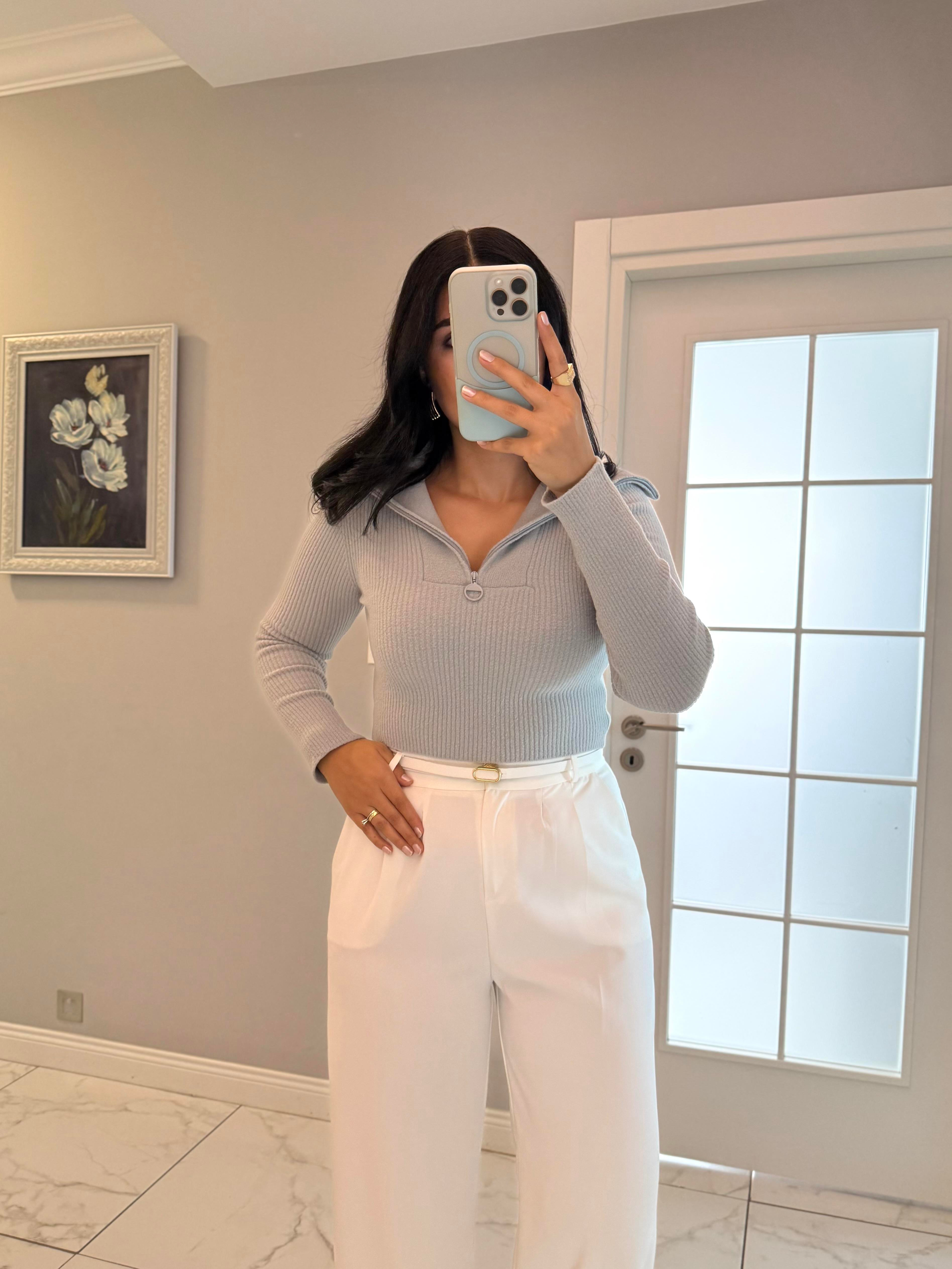 Gri Fitilli Fermuar Detaylı Dilvin Kazak